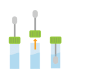 Unscrew the cap and turn the swab upside down. Place the swab inside the collection tube.