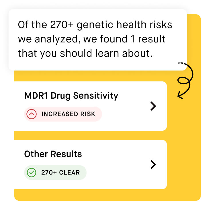 For example, did you know that some dogs have a genetic variant that makes them sensitive to certain drugs? Knowing if your dog has this drug sensitivity can help them avoid bad reactions to medication.