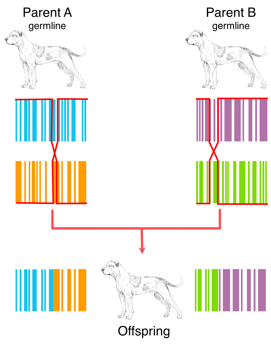 That’s the short answer, but we know that some of you need to know more to understand dog DNA. For an extended discussion of these processes, read on.