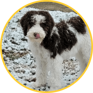“Our boy was found behind a dumpster with a giant abscess on his neck and was severely underweight weighing roughly 12 lbs. Whoever found him got in touch with a rescue and they got him the medical attention needed. He went on to live with a foster to recover. His foster was my coworker and she brought him to meet me. One snuggle was all I needed. We adopted him from the rescue in February of 2023 and thought he was possibly a Cockapoo but wanted to find out for sure so we sent his DNA to Embark. Turns out he is an F1B Bernedoodle and now weighs 80 lbs!!! He’s a wicked smart giant doof and we love him to pieces!” (@tonireffner)